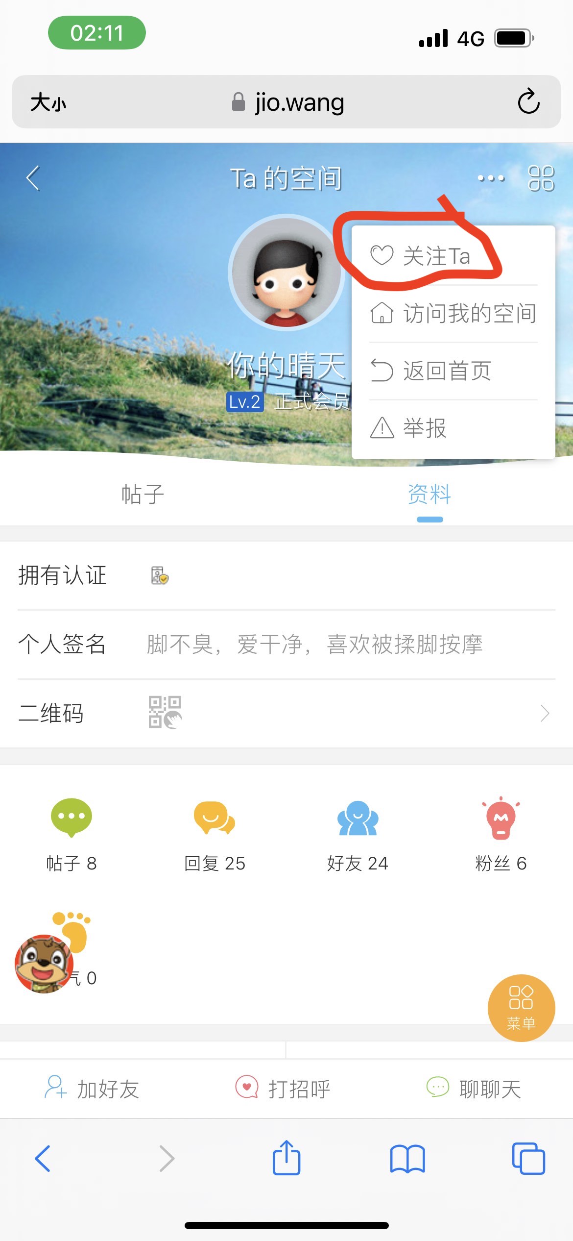 三、点击红框内的“关注Ta”。